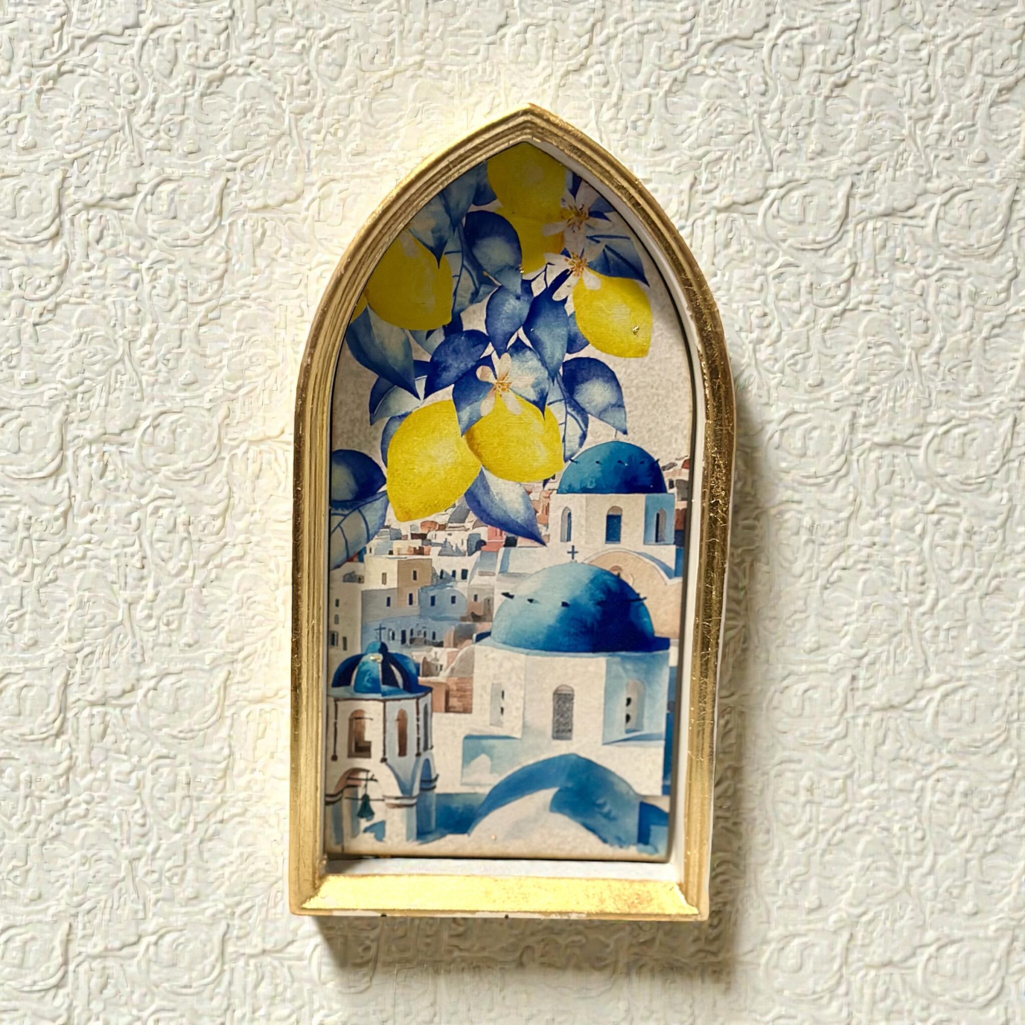 Bring a touch of faith and Greek heritage into your home with these beautifully crafted arch-shaped icons, finished with delicate gold detailing.